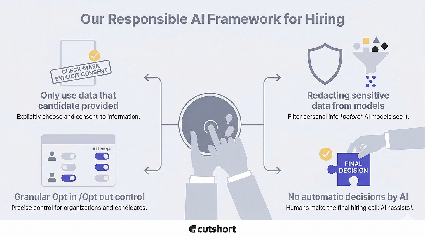 At Cutshort, we did exactly this and have documented our approach to Responsible AI in hiring here: